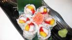 Tropicana Roll (6) three kinds of seasonal fruits w/black seasame & seaweed flake skin.